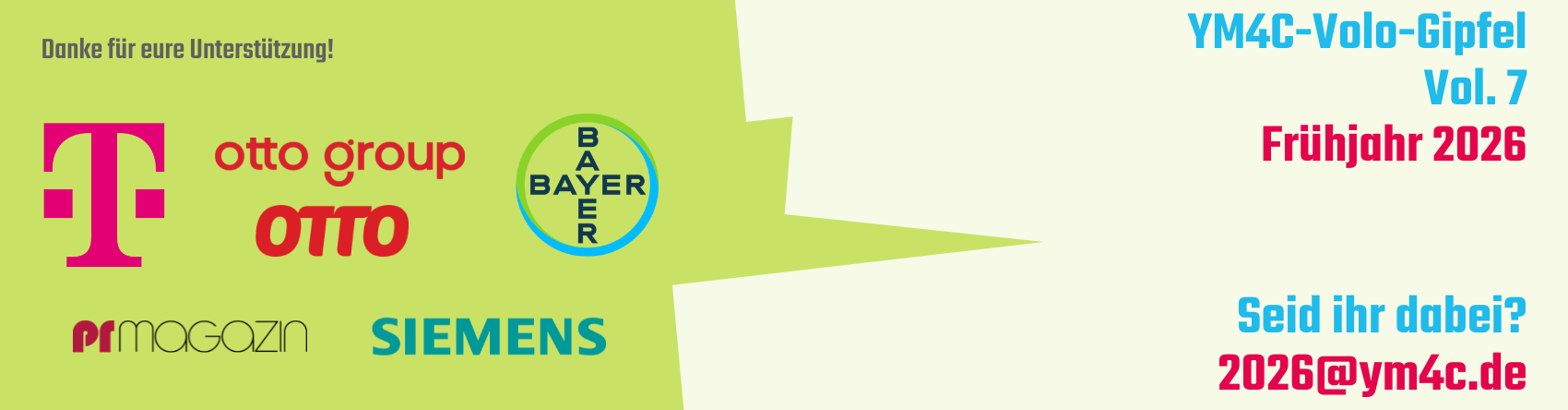 Ihr wollt uns eine Nachricht senden? Ihr habt konkrete Fragen? Ihr seid ein Unternehmen und wollt Förderer werden oder eure Volos anmelden? Schreibt uns an: hello[at]ym4c.de